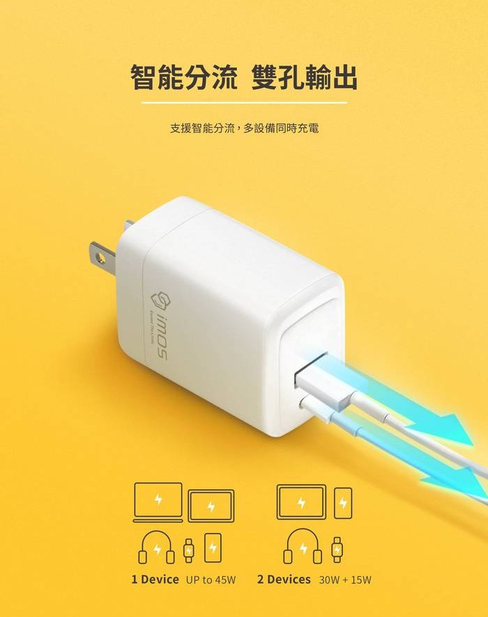 IMOS 45W萬旅GAN極速充電器 (四年保固)