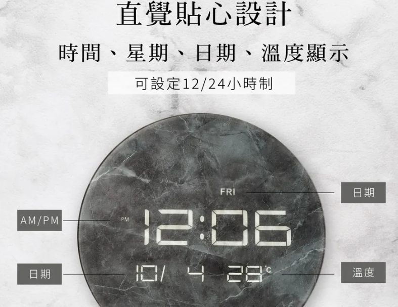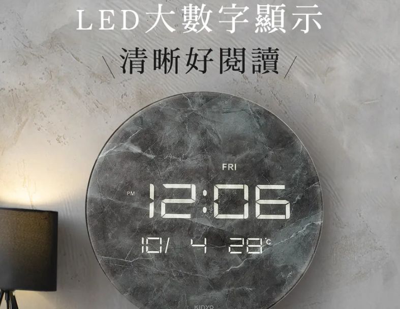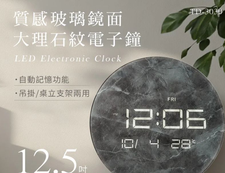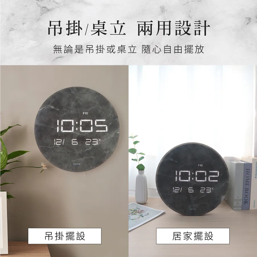 【KINYO】LED大理石紋 玻璃電子鐘12.5吋
