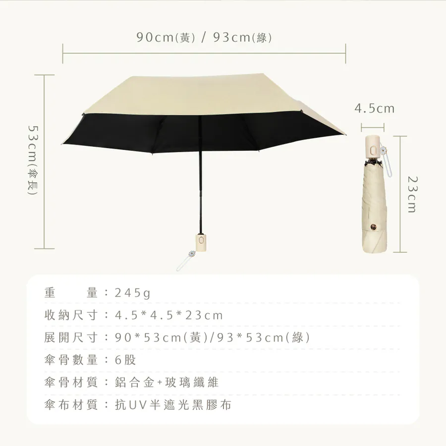 材質 : 傘布-半遮光黑膠布