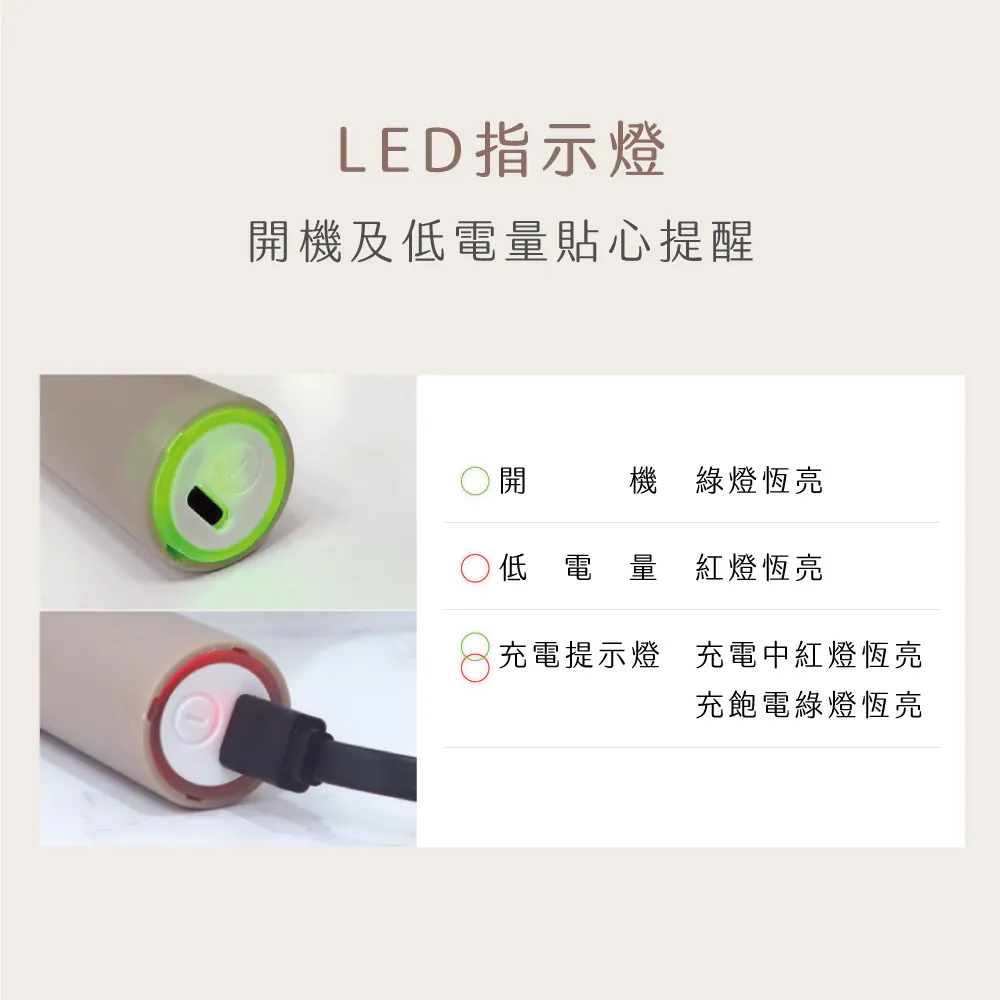 充電指示燈:充電中紅燈恆亮/充飽電綠燈恆亮