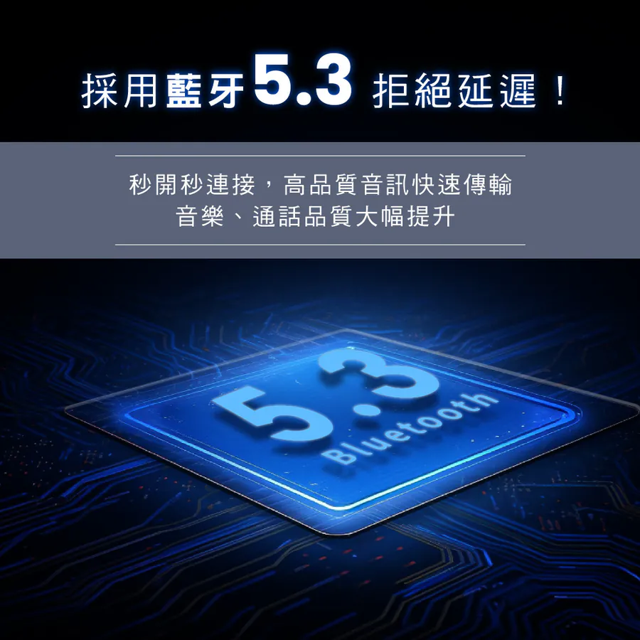 採用藍牙5.3連接│秒開秒連接 無需等待