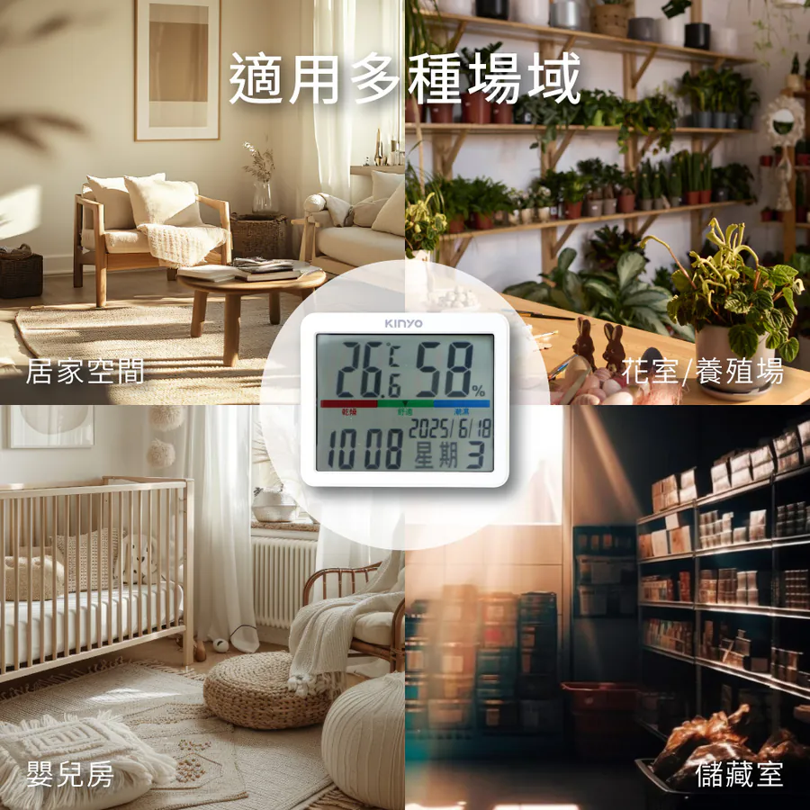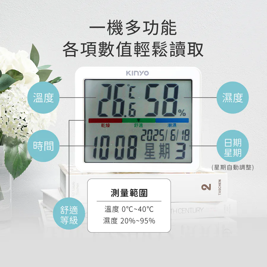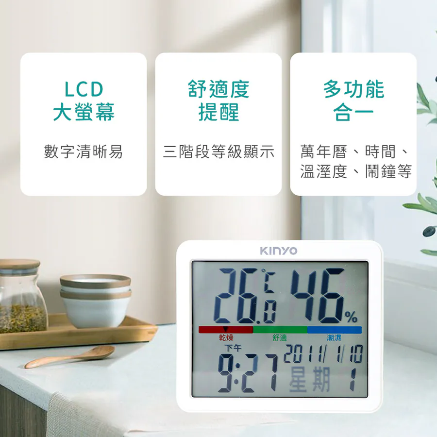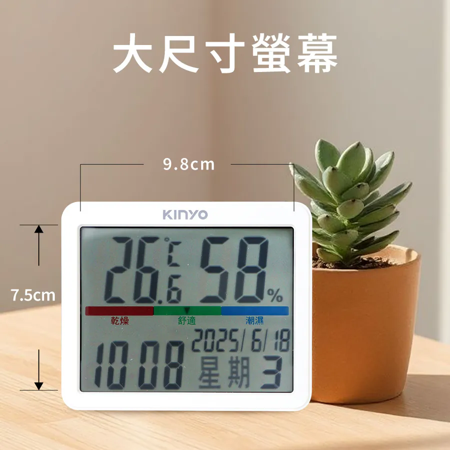【KINYO】萬年曆大螢幕溫濕度計_白 (TC-25)