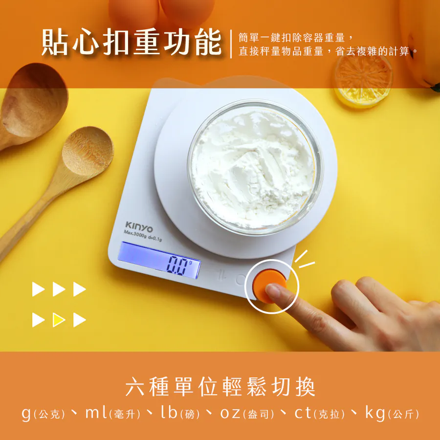 【KINYO】幾何高精準料理秤 0.1g精準測量 一鍵扣除容器重量