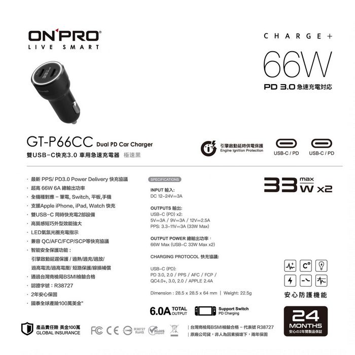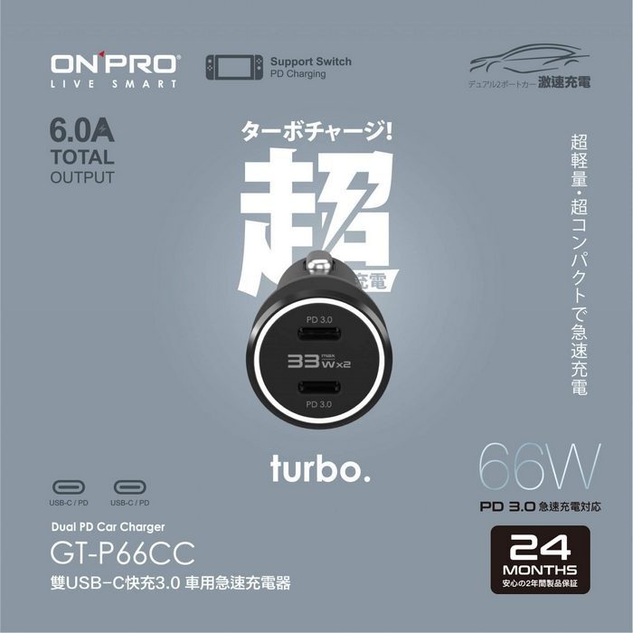 ONPRO-66W 雙PD孔鋁合金MINI車充頭 (BSMI)