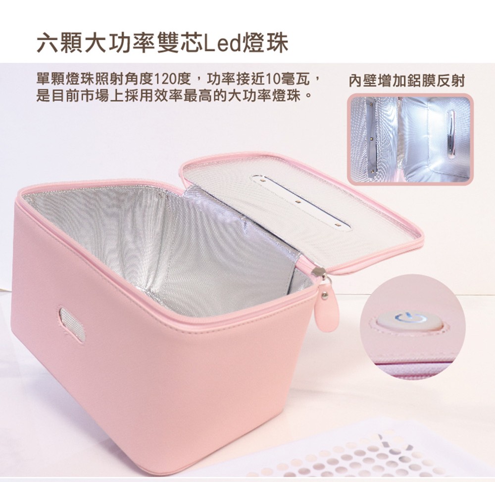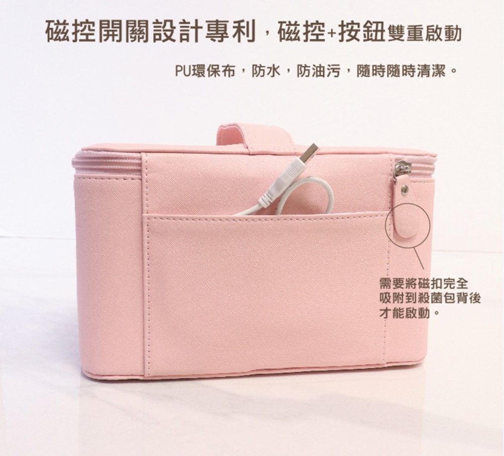6、包身內壁無死角,光滑立體設計,無外接連接部件,更簡潔高檔。 7、5分鐘自動殺菌,殺菌完成後自動熄滅。一鍵啟動,呼吸燈設計,傻瓜式操作。