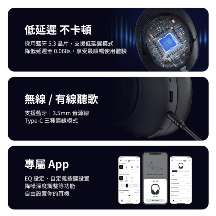 商品名稱:QCY H3 降噪藍牙耳罩式耳機