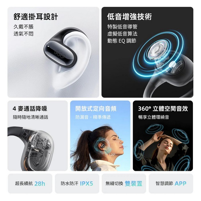 無需入耳,長時間配戴舒適無負擔,戶外運動保持環境音感知更安全。