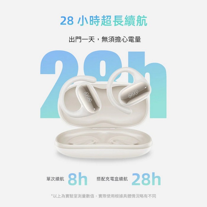 耳機單次可用約 8.5h,搭配充電盒最高約 28h,輕鬆應對一整天。