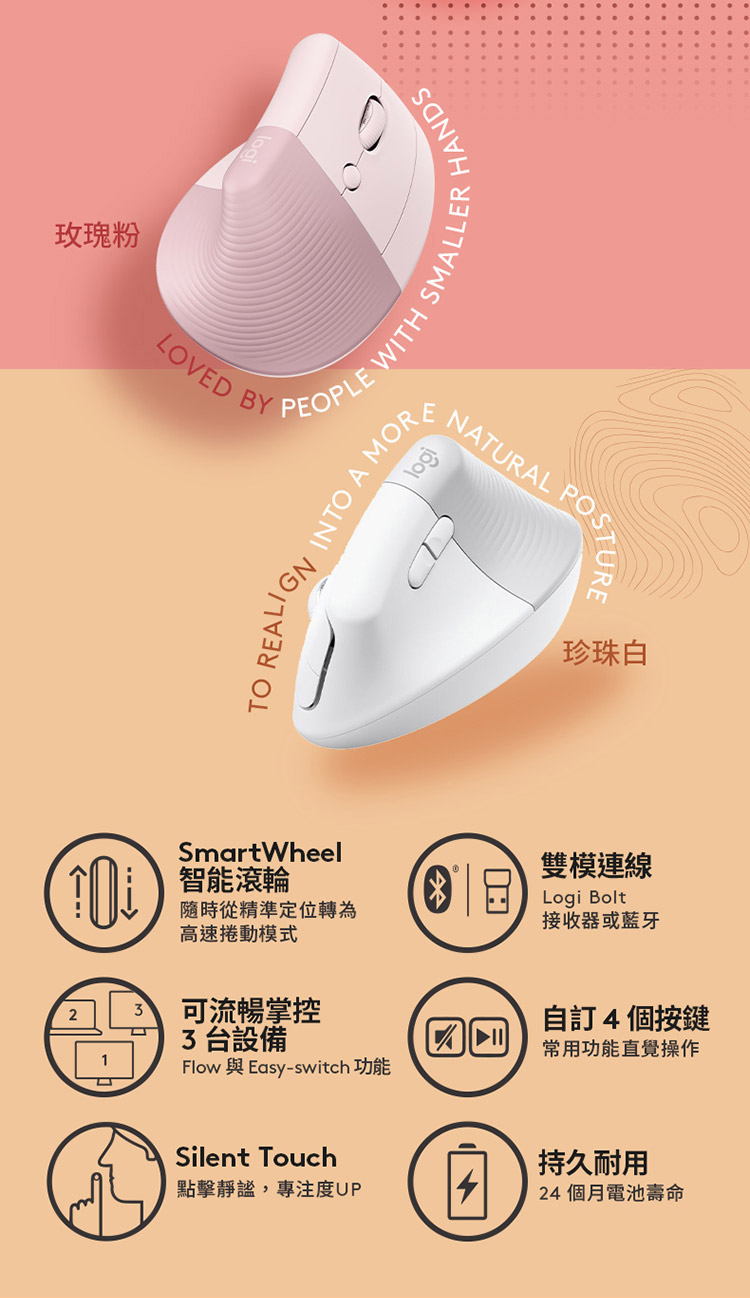 Logitech 羅技 Lift人體工學垂直無線藍牙滑鼠