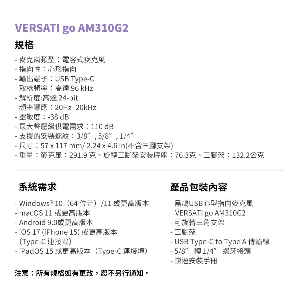 AVerMedia AM310G2 黑鳩 USB 麥克風