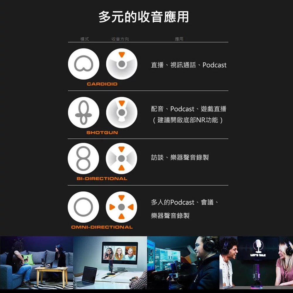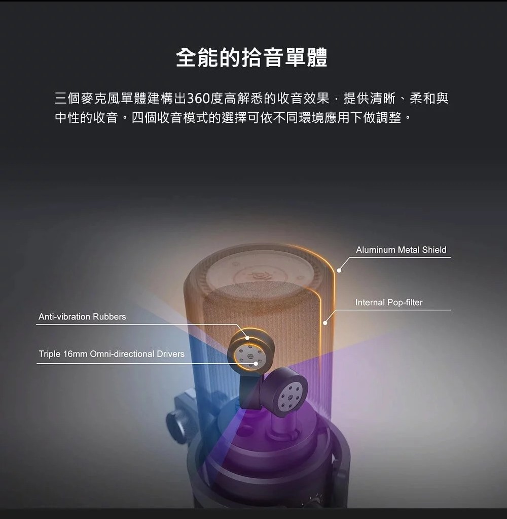 •全方位室內型麥克風:專為遊戲、直播、會議打造