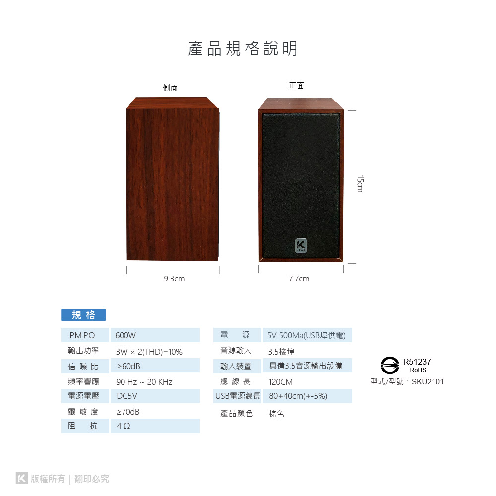包裝內容 : 木質二件式USB多媒體喇叭×1