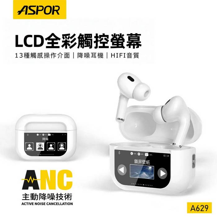 【ASPOR】A629 ANC 降噪 多功能智能彩色螢幕觸控 無線藍牙耳機