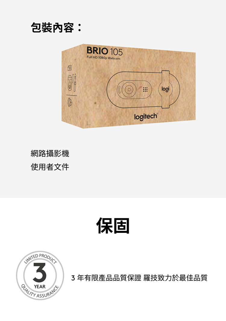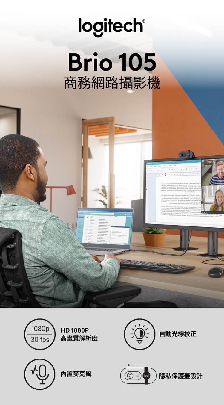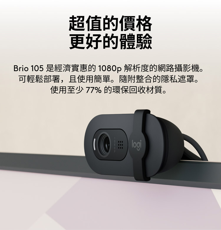 Brio 105 是價格實惠的 1080p 解析度超超值網路攝影機。