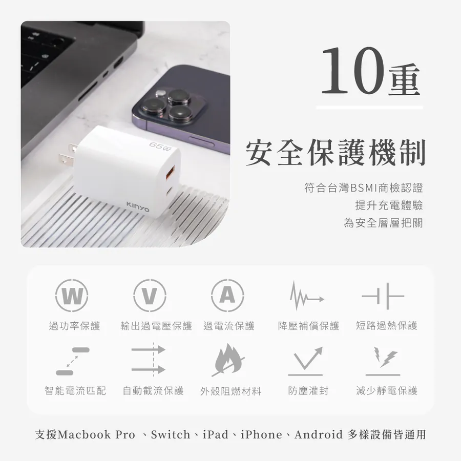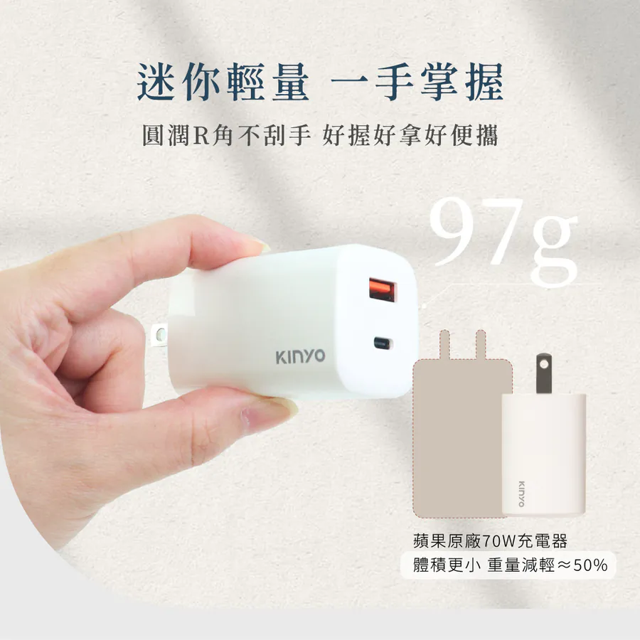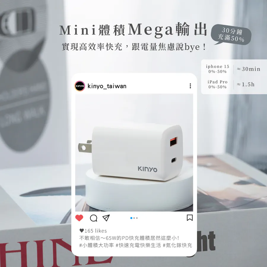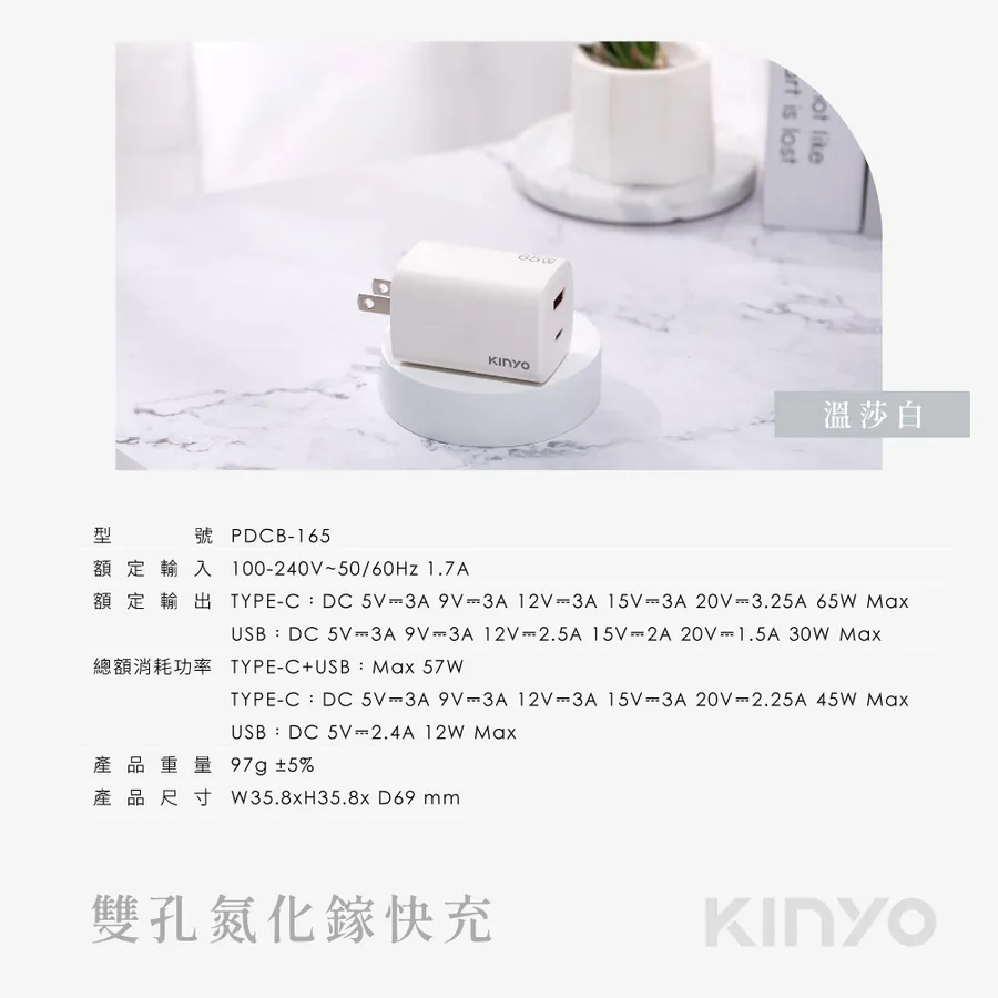 【KINYO】氮化鎵雙孔PD充電器65W (PDCB-165)