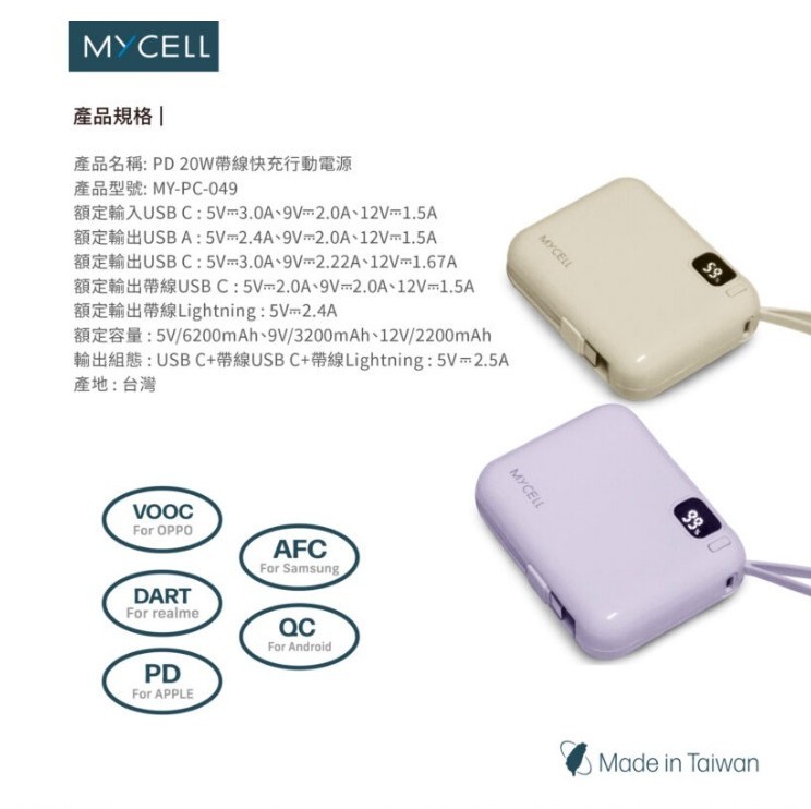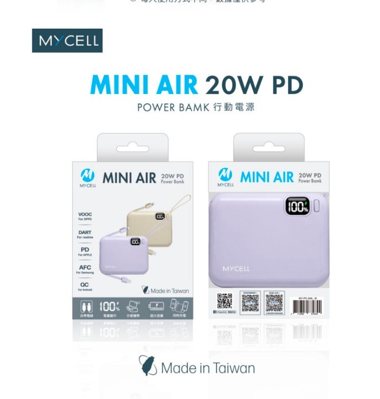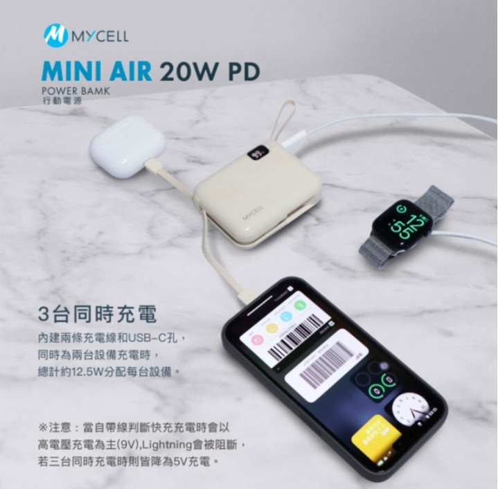 ◆包裝內容物: MiniAir 20W PD帶線閃充行動電源 奶茶 x1