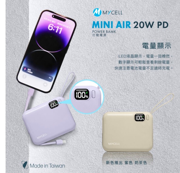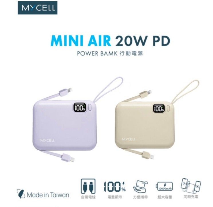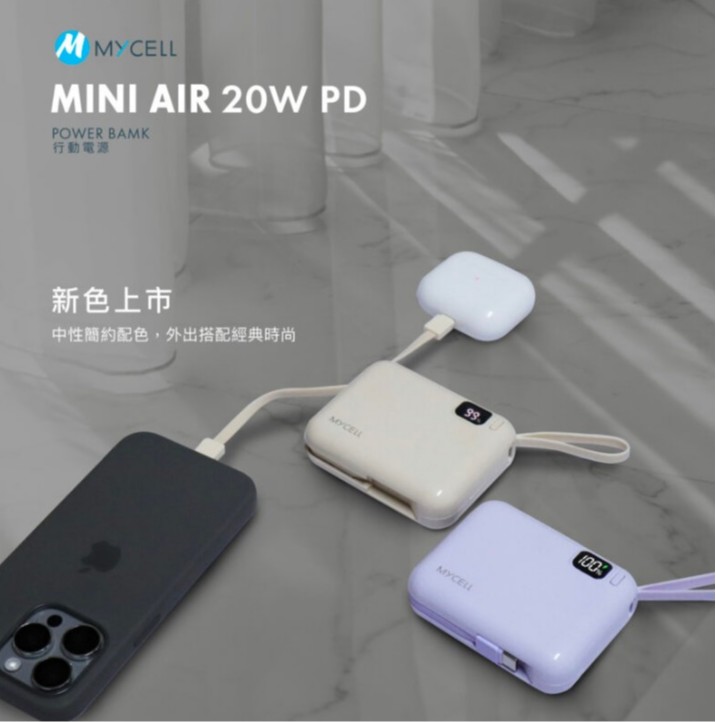 ◆商品名稱:MiniAir 20W PD帶線閃充行動電源 奶茶