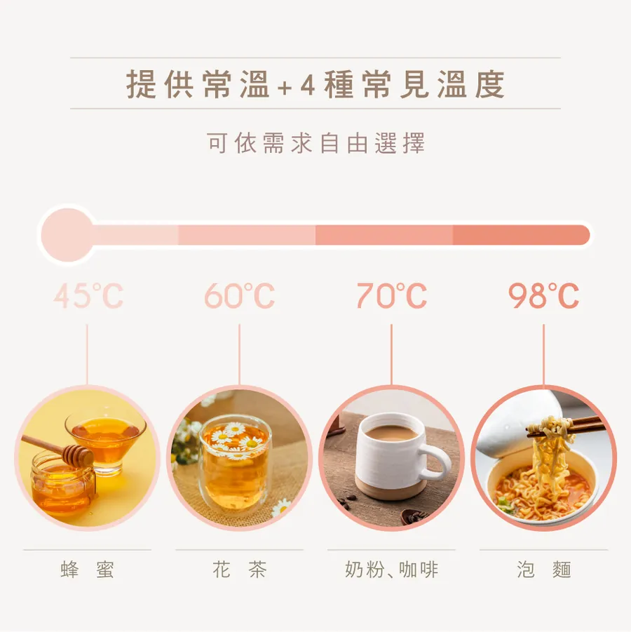 五段溫控|常溫 / 45°C / 60°C / 70°C / 98°C