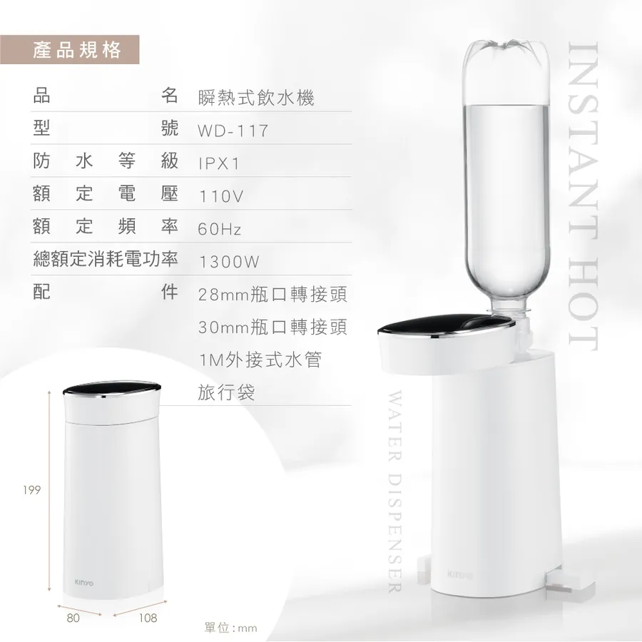 ✨【KINYO 迷你智能瞬熱飲水機 WD-117】