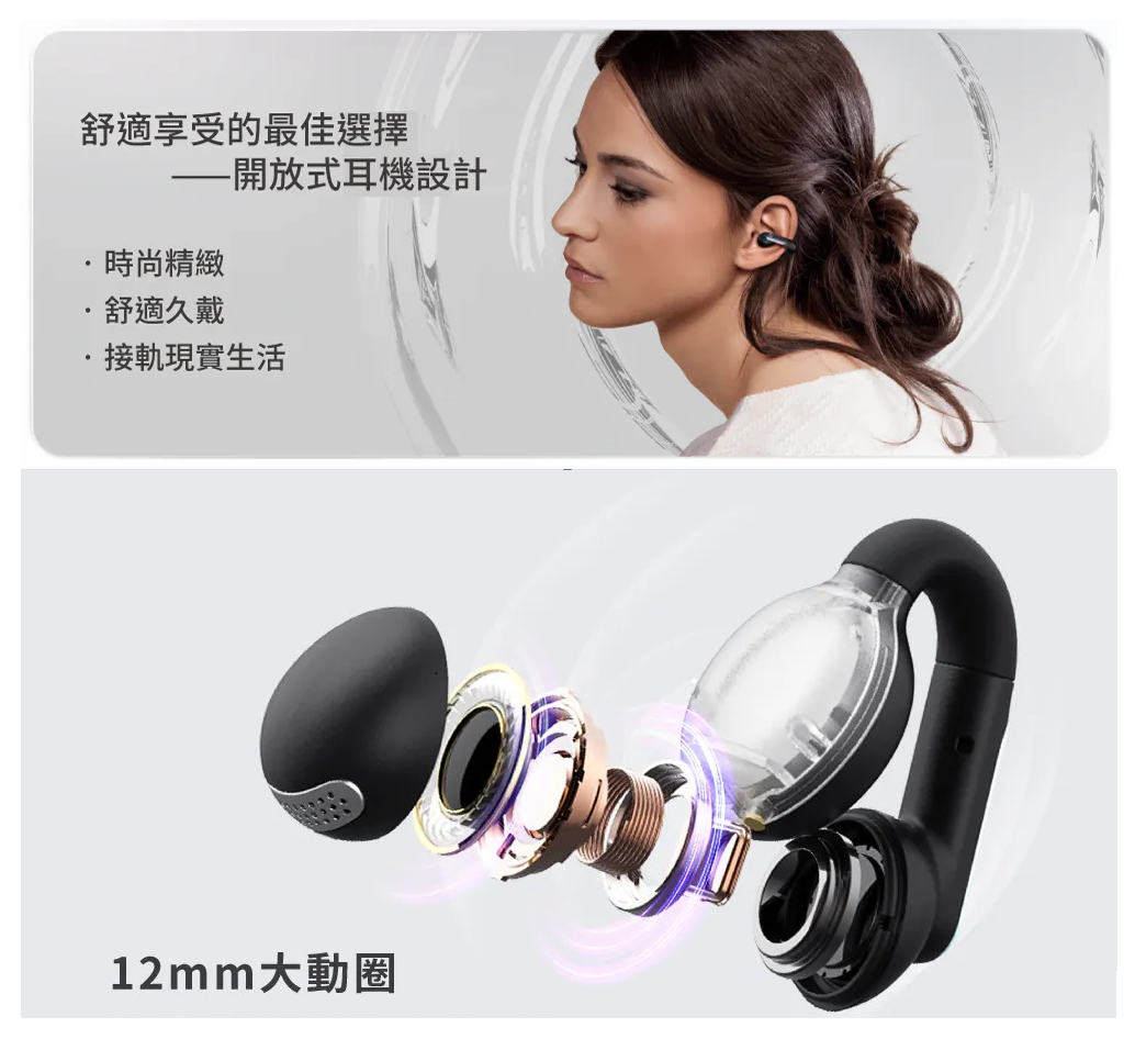 ◎ 開放不入耳,舒適無感佩戴 ◎ AI通話降噪