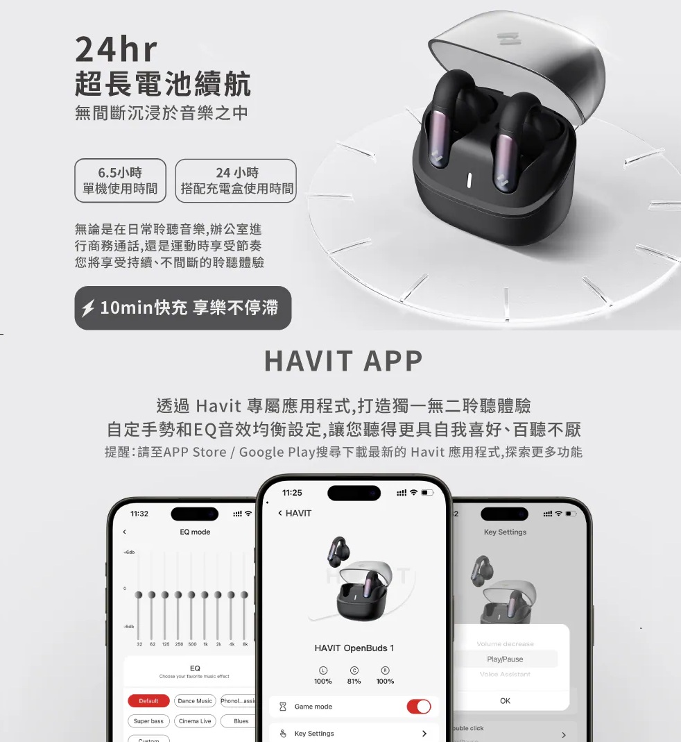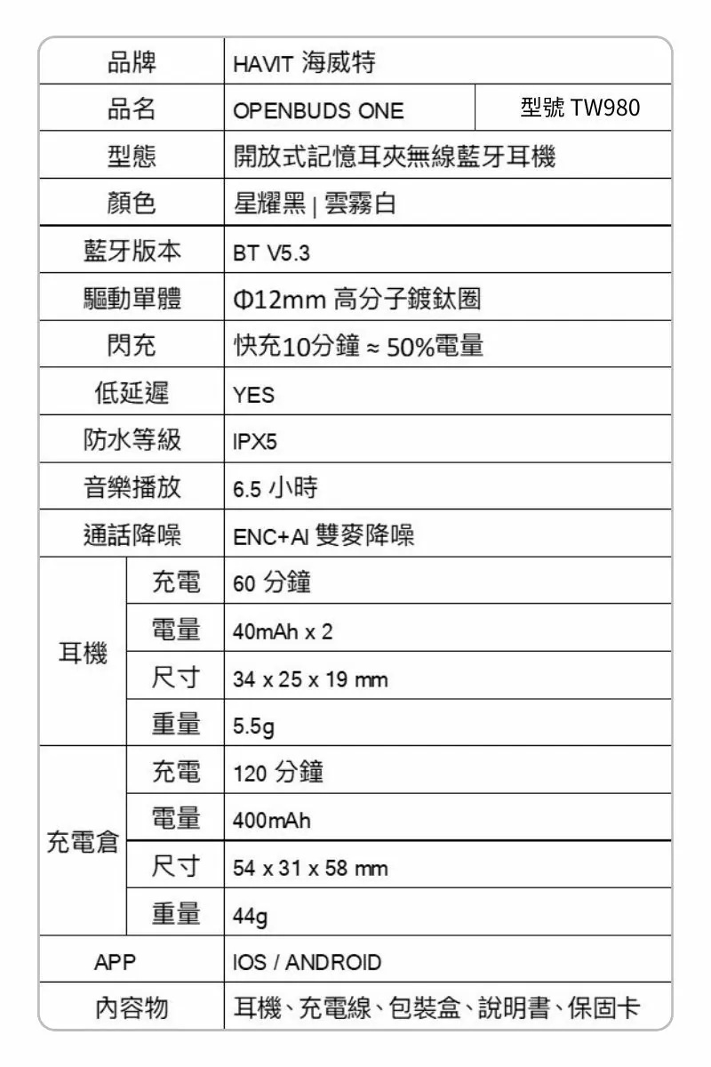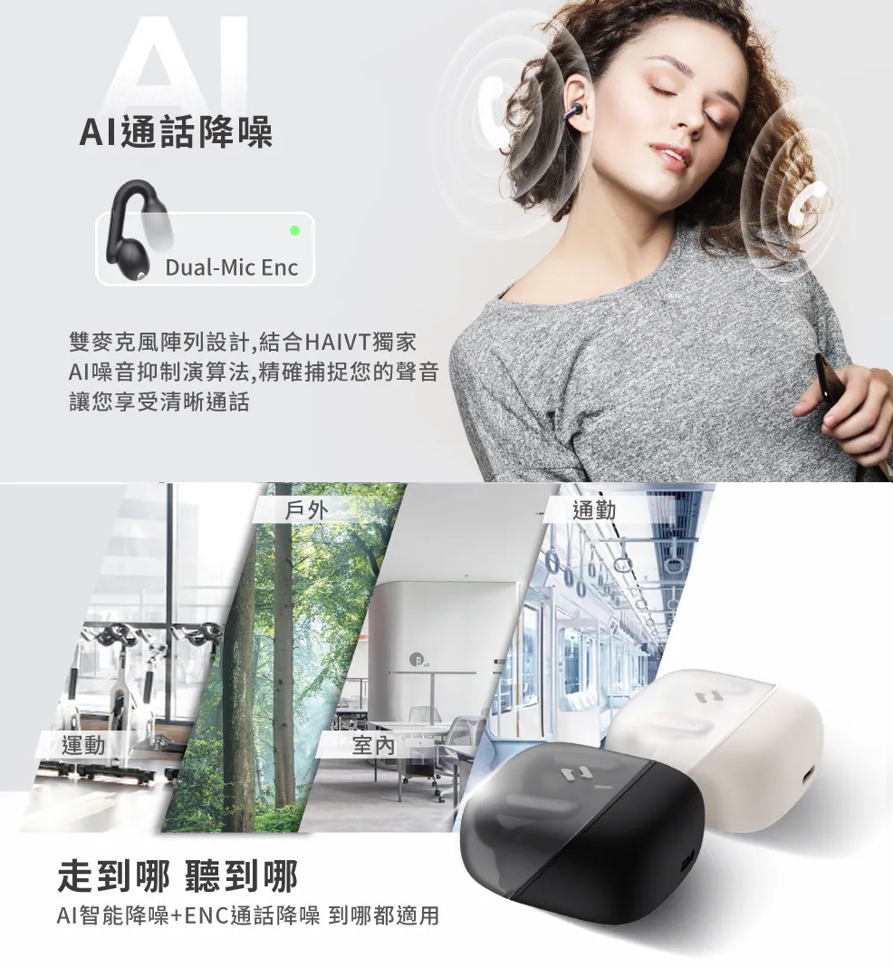 星耀黑 Havit海威特 OPENBUDS 1開放耳夾式真無線藍牙耳機