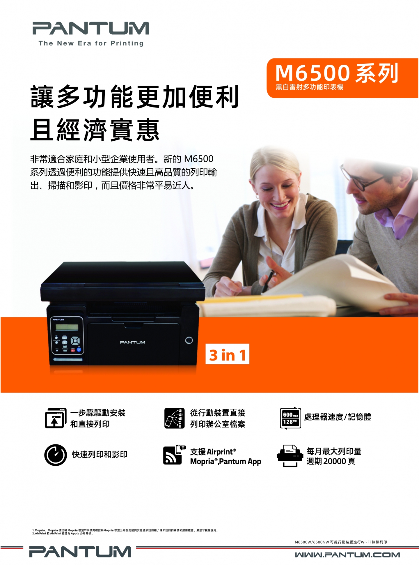 【PANTUM 奔圖】 M6500NW 黑白雷射多功能印表機
