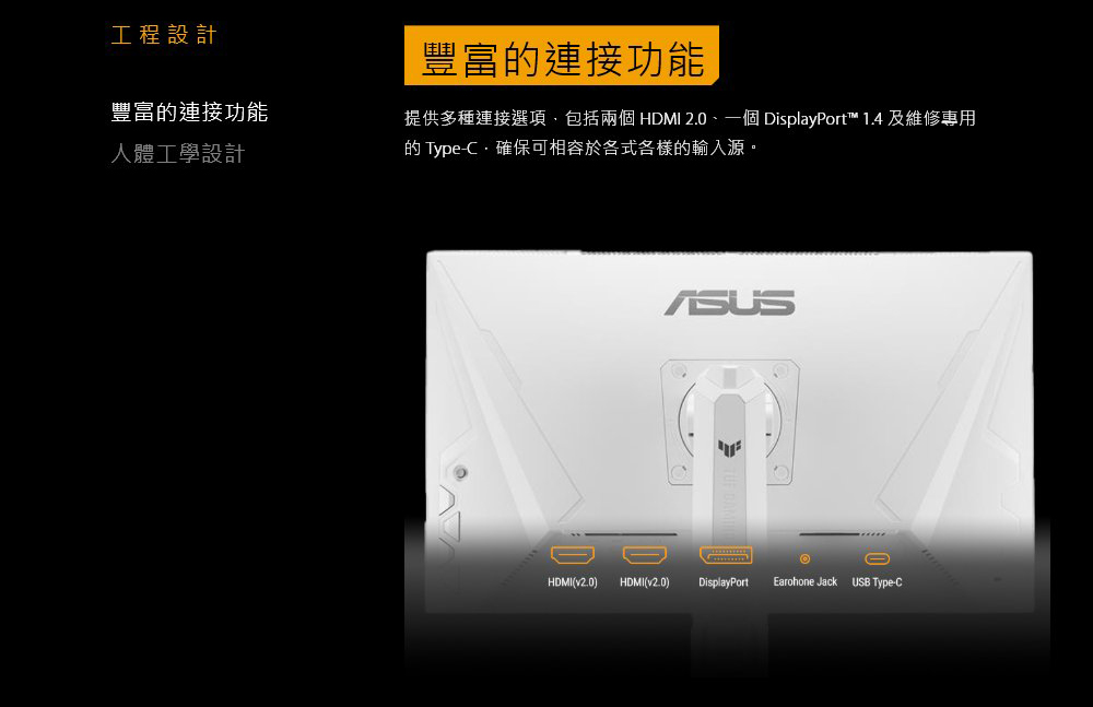 訊號接頭 DisplayPort 1.4x 1 (HBR2)/HDMI(v2.0)x 2/USB