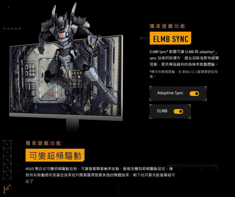 ASUS Extreme Low Motion Blur Sync (ELMB Sync) 技術可讓 ELMB 與可變更新率技術同時運作,