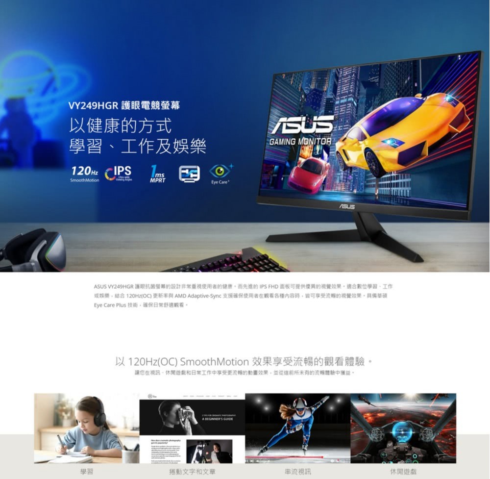 ASUS VY249HGR 護眼電競螢幕 – 23.8 吋