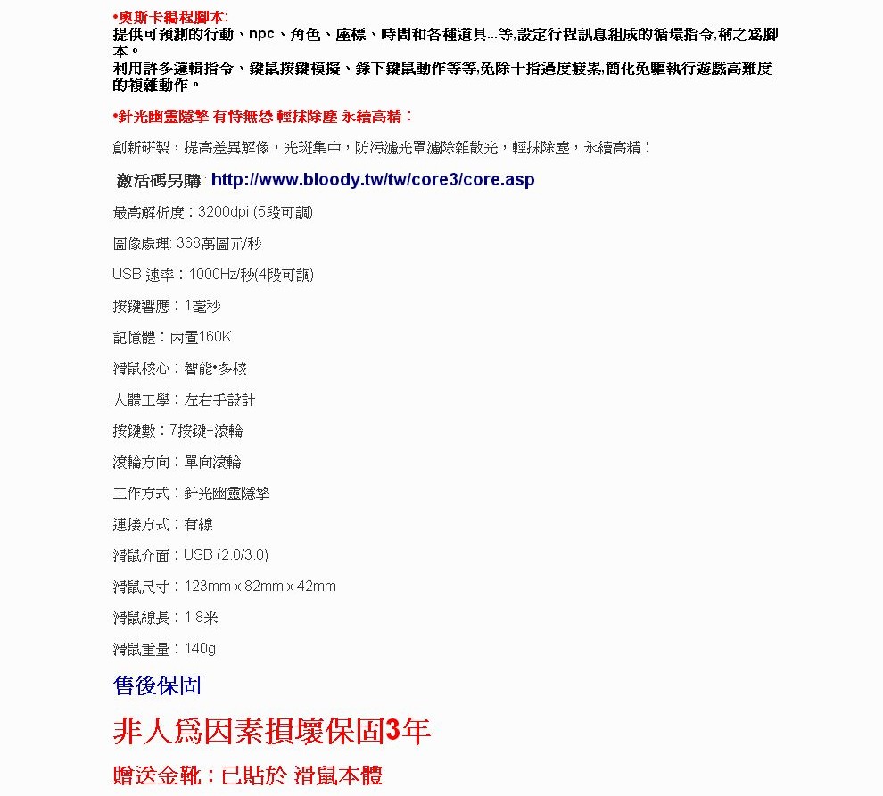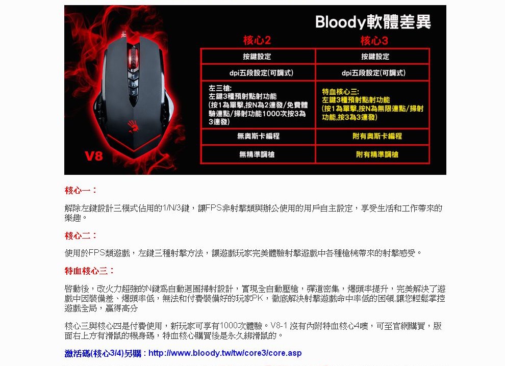激活碼另購:http://www.bloody.tw/tw/core3/core.asp