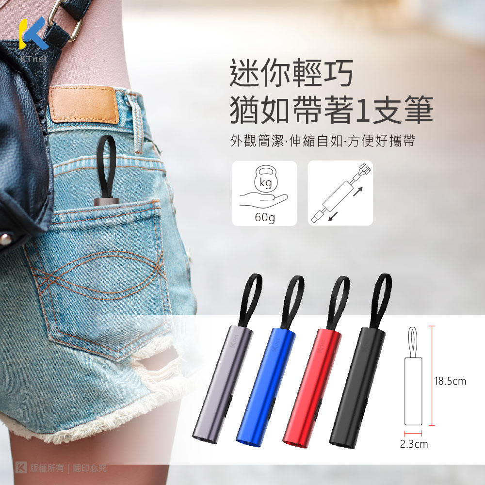 ■伸縮收納棒型的鋁合金充電線,體積小輕量好攜帶。