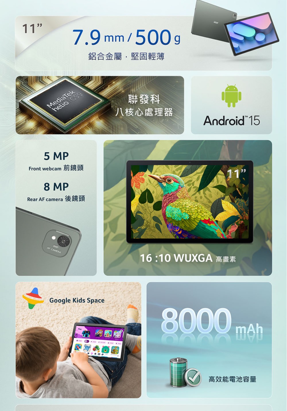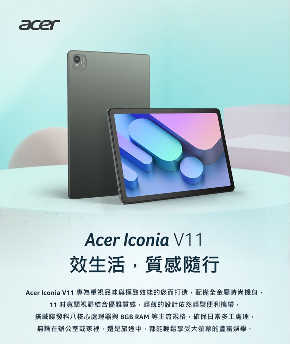 宏碁 Acer Iconia Tab V11-21M 10.95 吋平板電腦|8G / 128G|WiFi 版|墨霧綠