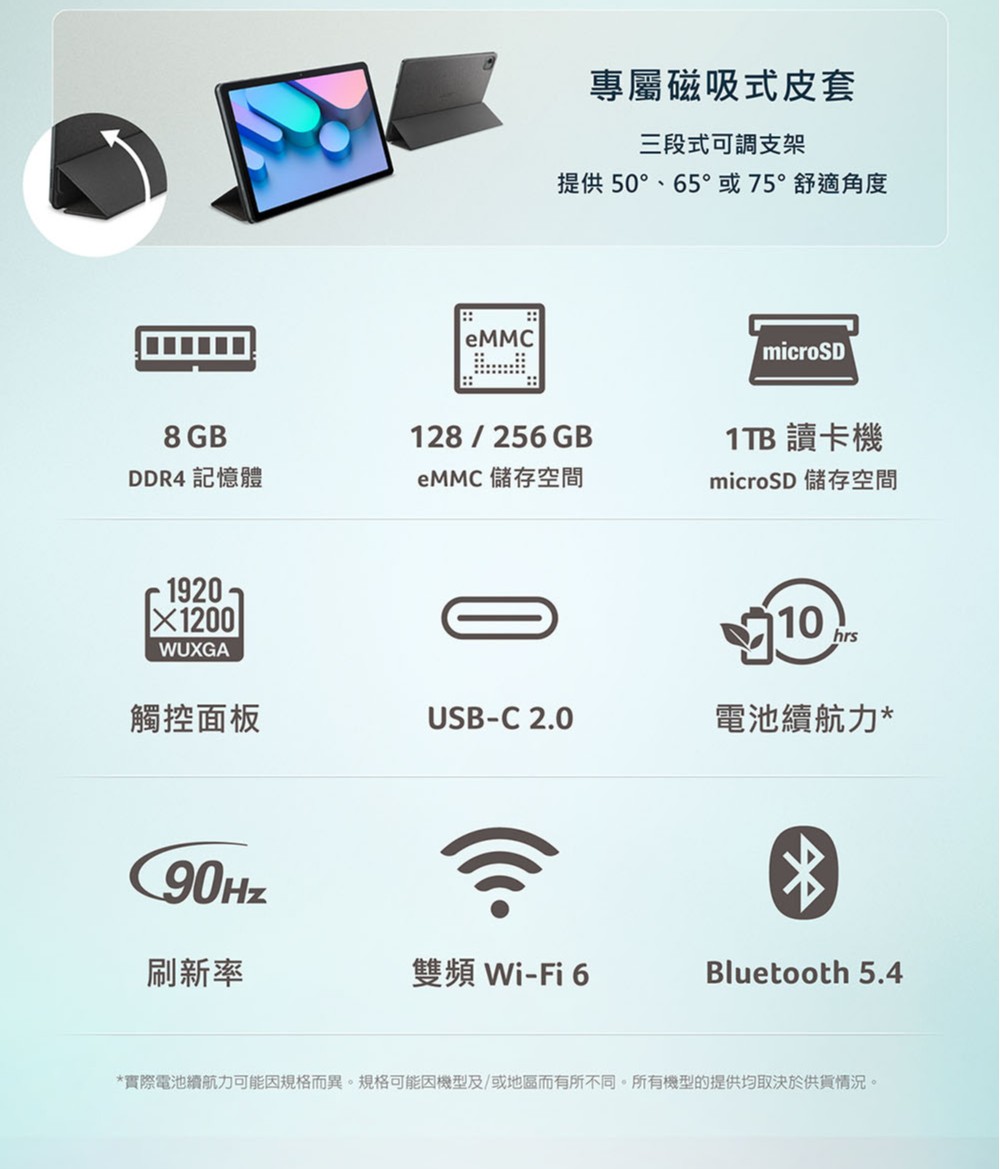 10.95 吋平板電腦|8G / 128G|WiFi 版|墨霧綠
