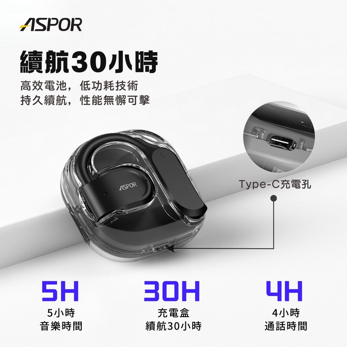 ASPOR 開放式耳掛藍牙耳機 A627 黑色、白色、霧藍色