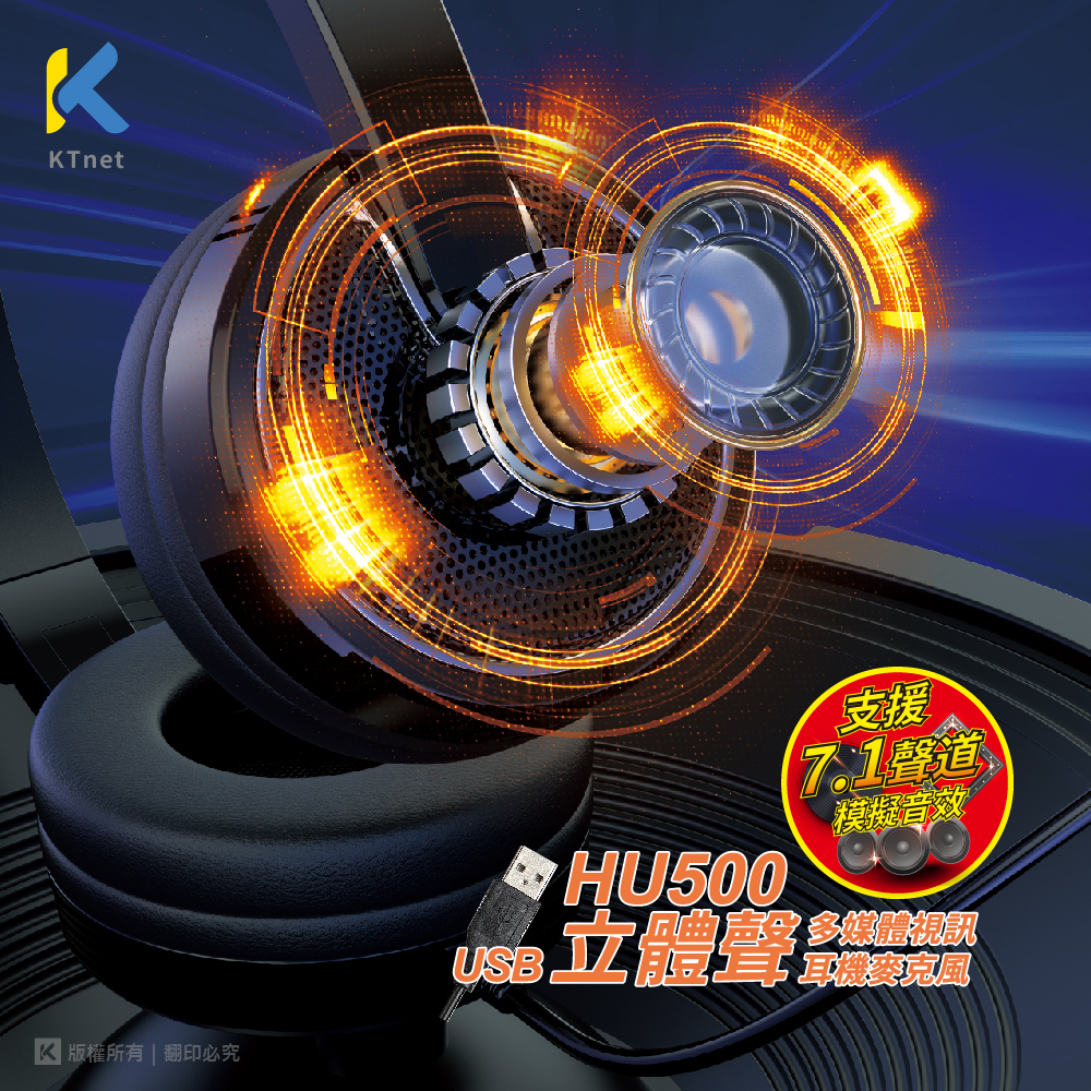 ktnet HU500 USB7.1音效電腦多媒體耳機麥克風