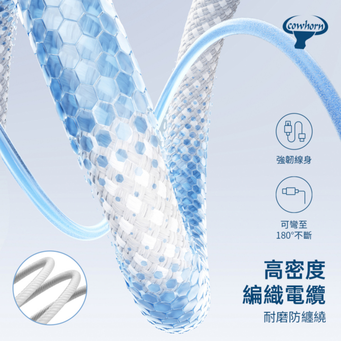 牛角牌 cowhorn 編織白線 type C usb A lightning 充電 數據線 快充