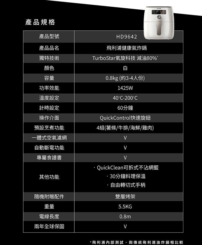 - 省時,無需預熱;更廣的溫度設定區間40度~200度