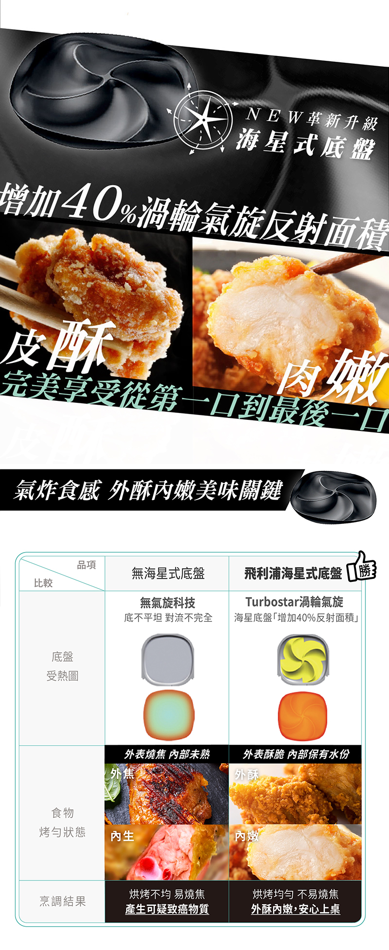 - TurboStar氣旋科技:均勻上色,呈現外酥內軟的效果